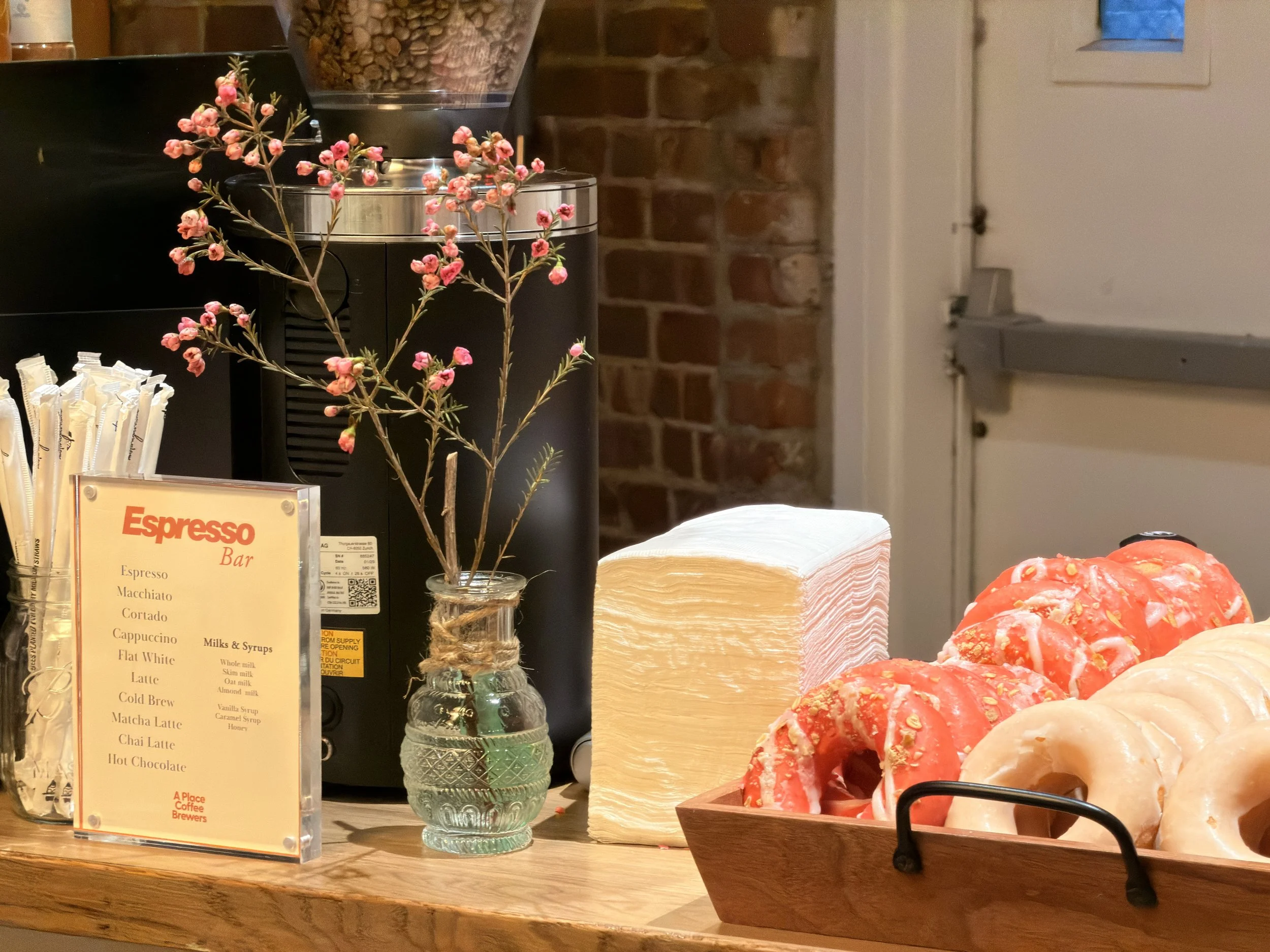 A Place Coffee Brewers provides an extensive selection of espresso-based drinks, including popular favorites such as lattes and cappuccinos. Most recently, we have introduced a delightful brew coffee option to further cater to our customers' preferences. Additionally, our menu also features matcha and chai lattes, allowing for even more variety. To enhance your beverage experience, we proudly offer three different milk options: oat, almond, and whole milk, ensuring that everyone can find something they love.